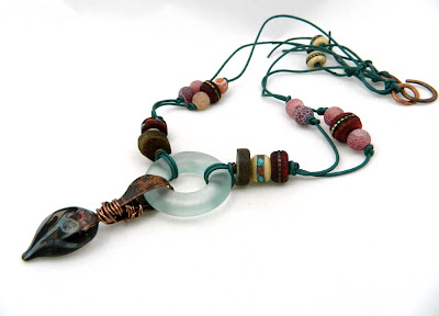 One of my lampworked copper pieces folded over and fastened here.
